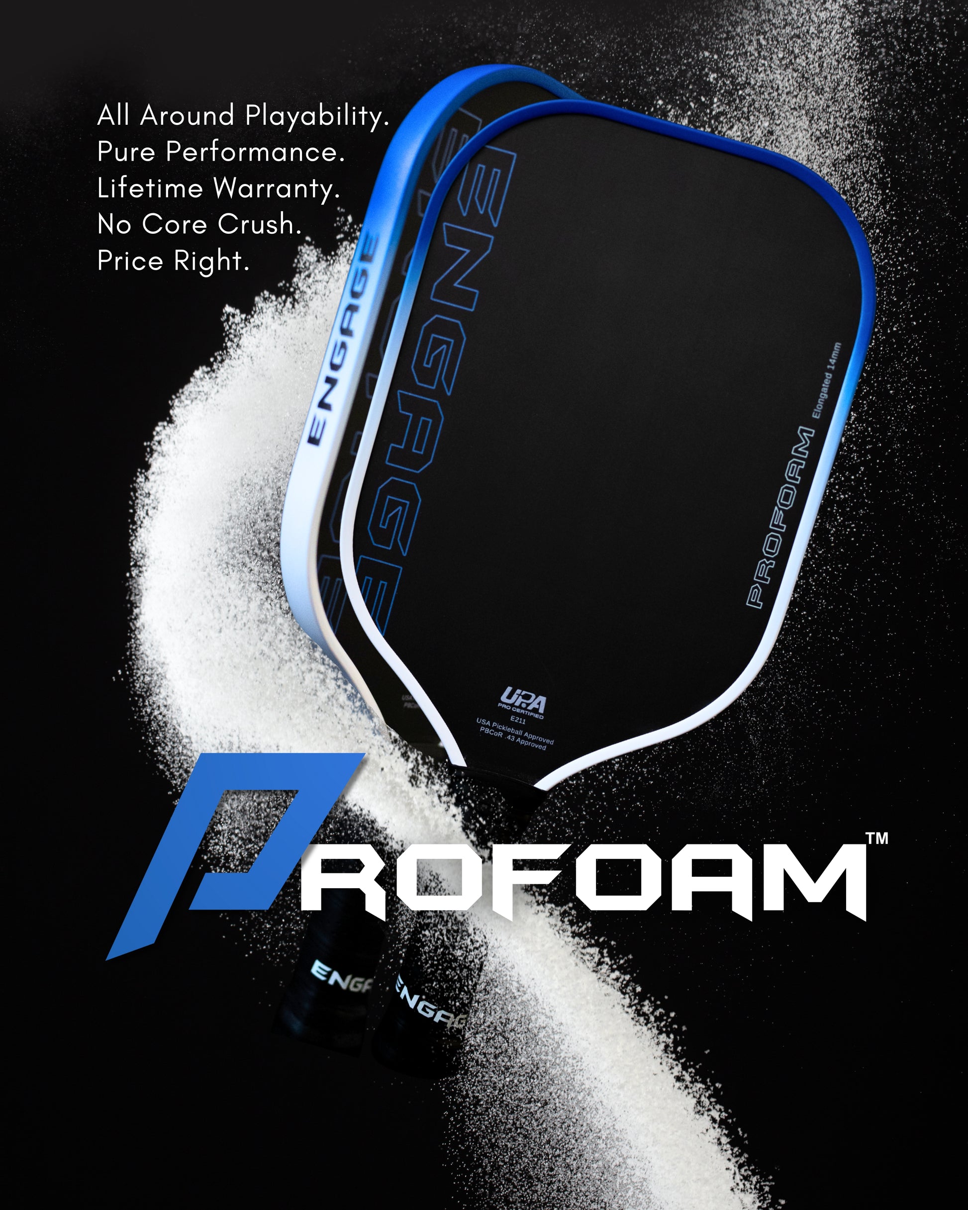 Engage’s New Performance Thermoformed paddle with Foam Core is here — all foam, no honeycomb, and all performance! Built with our high-density ProFoam Core, this paddle delivers explosive power, unmatched consistency, and spin-loading dwell time from day one to day 100 and beyond.